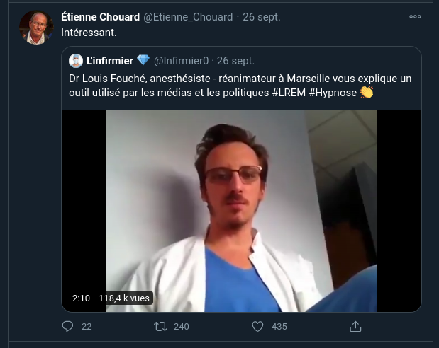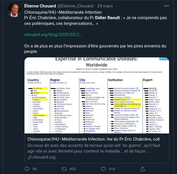 Et toujours en allant s'appuyer sur des références solides, genre Didier Raoult, France Soir, Martine Wonner, MedicalFollower, etc. Comme il le fait depuis toujours.