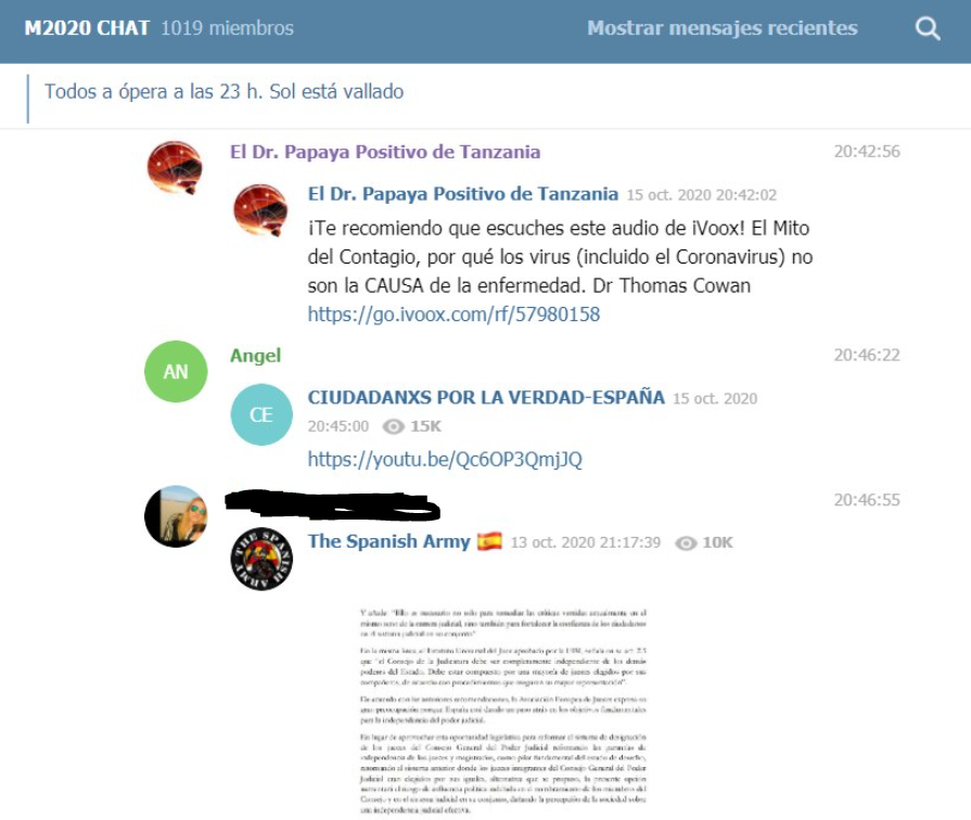Existen infinidad de cuentas de VOX y otros grupos de extrema derecha difundieron las diferentes convocatorias que se movían por sus grupos internos, entre ellos los de telegram que hemos mostrado antes.