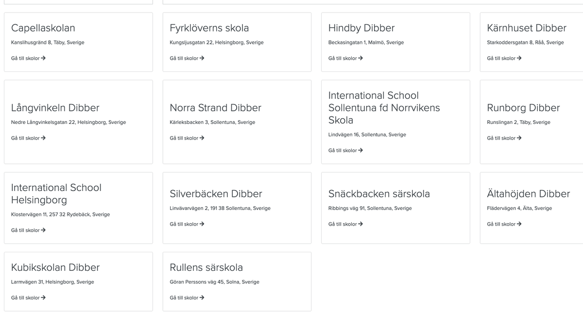 Men när man tittar på Skolverkets statistik finns inte "Dibber" representerade i listan. Har de inga skolor? De ägde ju 14 stycken?