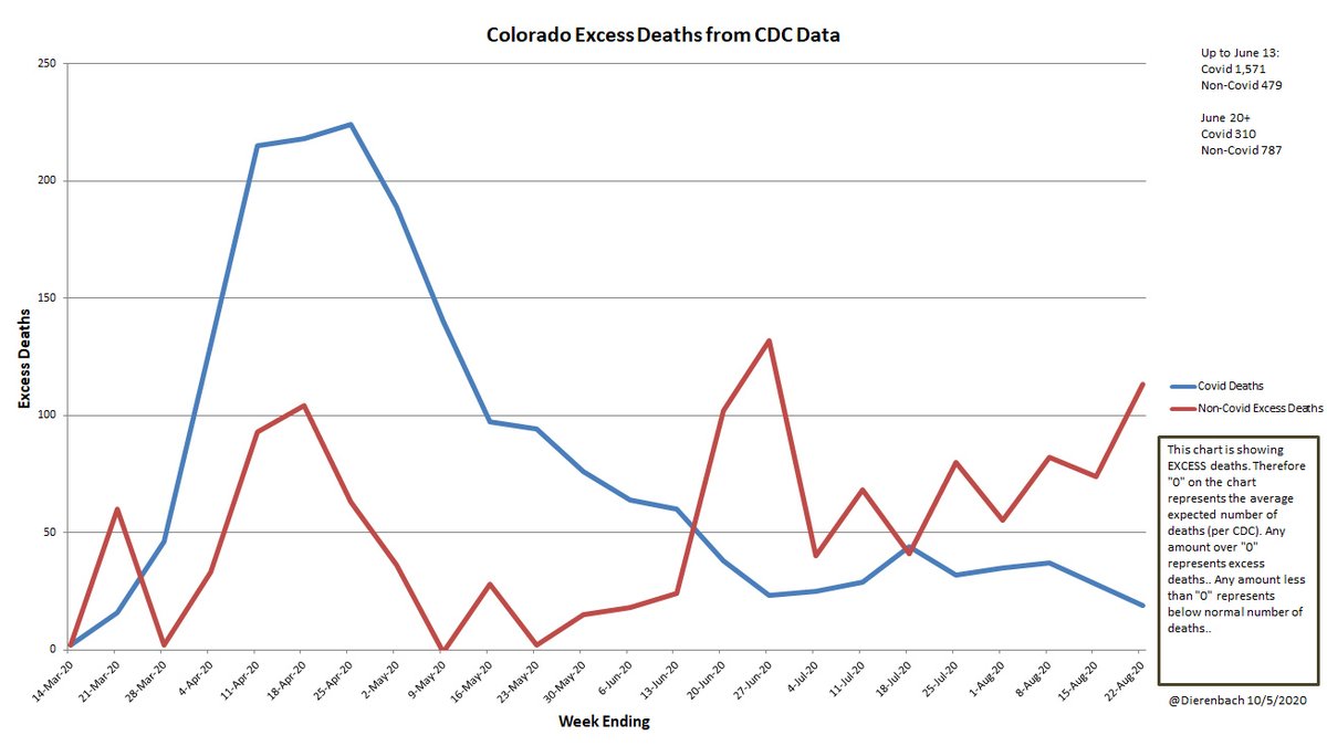 CDC excess death data shows since June 20 more than twice as many Coloradans have died from @GovofCO@CDPHE and local restrictions than have died from Covid.