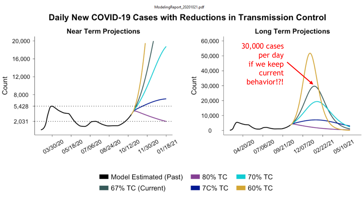 A nightmare scenario is we enter lockdown, cases turn downward as part of the natural process, but people become convinced the lockdowns caused the downturn, and we remain too afraid to open back up. This is what happened to CO over the summer when we could have opened more. 9/12