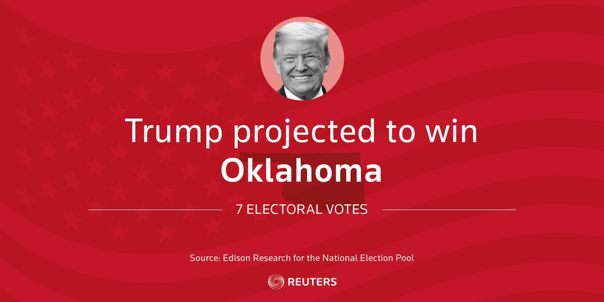 Edison Research projects that Trump wins Tennessee, adding 11 more electoral votes to his tally #Election2020reut.rs/34jUgcH