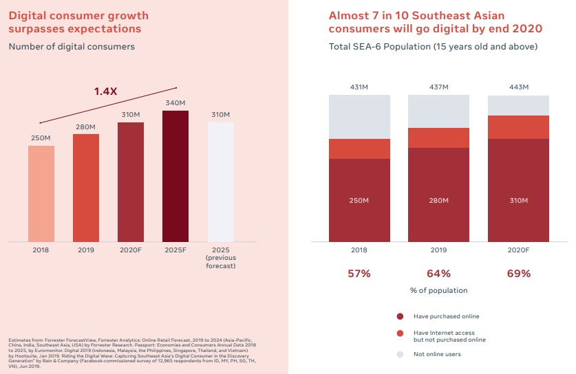 Si os fijáis, para finales del 2020 se espera que la cifra prevista de consumidores digitales en el sudeste asiático alcance los 310 millones.