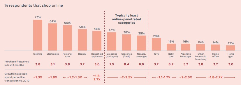 Aunque el Sudeste Asiático ha superado en compras online a la India, todavía está muy por debajo en comparación con el 31% que suponen en China.