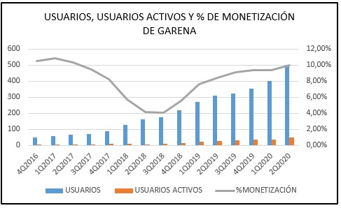 Los ingresos de Garena se derivan de la cantidad de usuarios activos y de la cantidad de usuarios que pagan.
