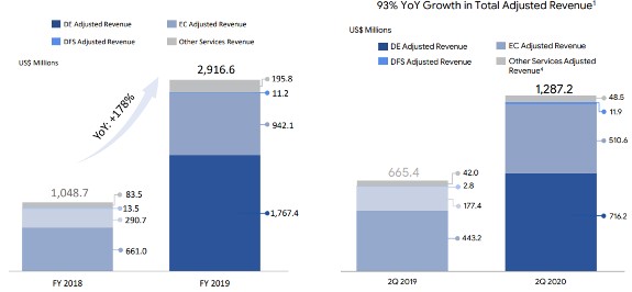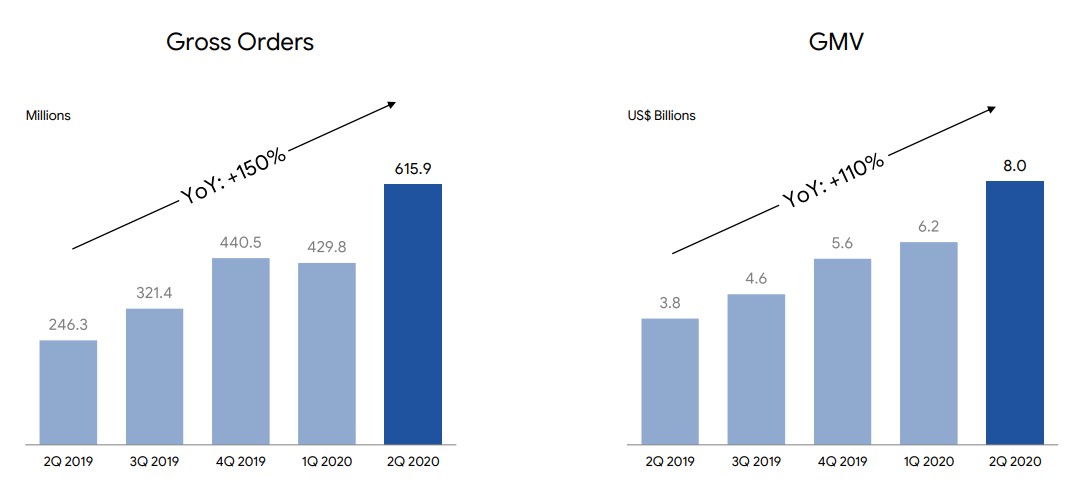 En lo que respecta a Shopee, en el 2019 tuvo un aumento del beneficio ajustado de un 224.1% con respecto al 2018, y en el segundo trimestre del 2020 lleva un aumento del beneficio ajustado del 187.7%