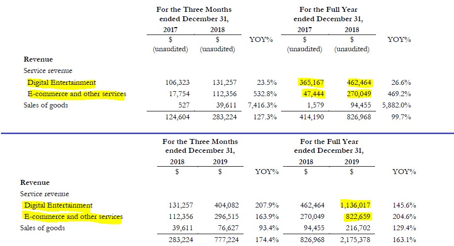 Shopee y SeaMoney han aumentado de 47.4M a 822M en 2019, lo que supone un aumento de un 1734%.
