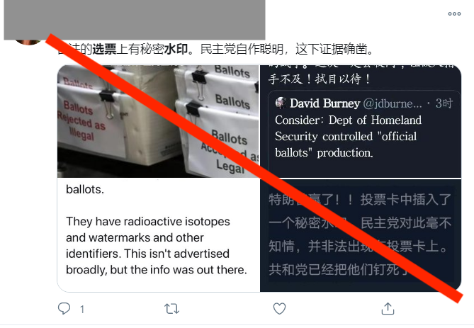 We have observed false claims that “real” ballots have so-called “non-radioactive” isotope watermarks on them. Watermarks can be on mail-in ballots, but that does not mean they are used to target voters maliciously or as a method to conduct election fraud. [1/6]