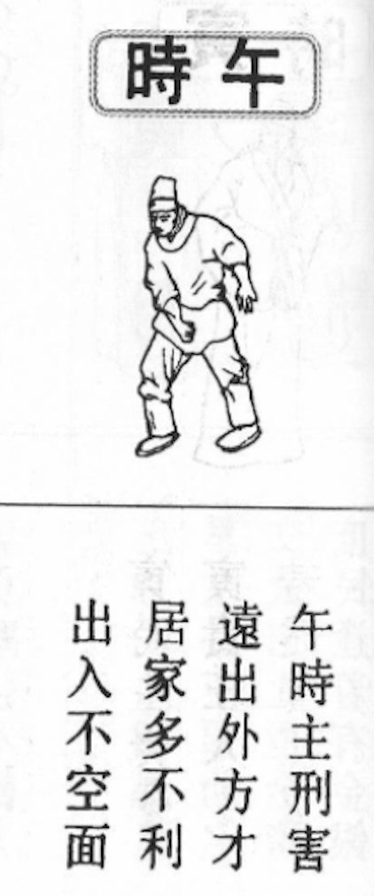 12午時主刑害。遠出外方才。居家多不利。出入不空面。
