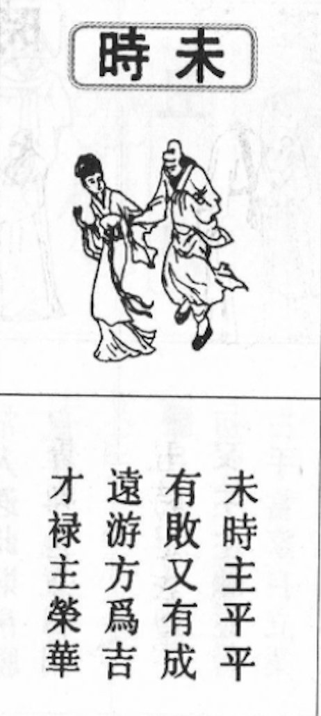 13/ 未時主平平。有敗又有成。遠游方為吉。才祿主榮華.