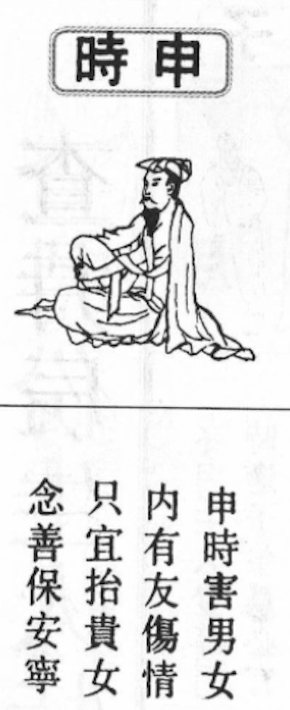 I should also note this table is entitled in Chinese 【查時辰特性】-- The special characteristics of each hour.