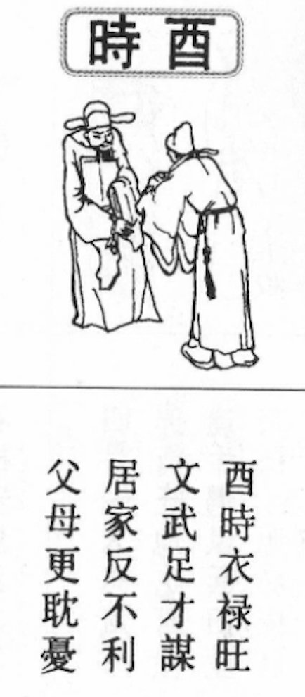 15/ 酉時衣祿旺。文武足才謀。居家反不利。父母更耽憂。