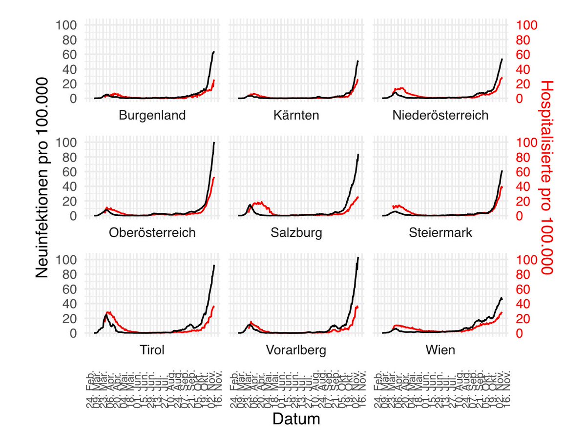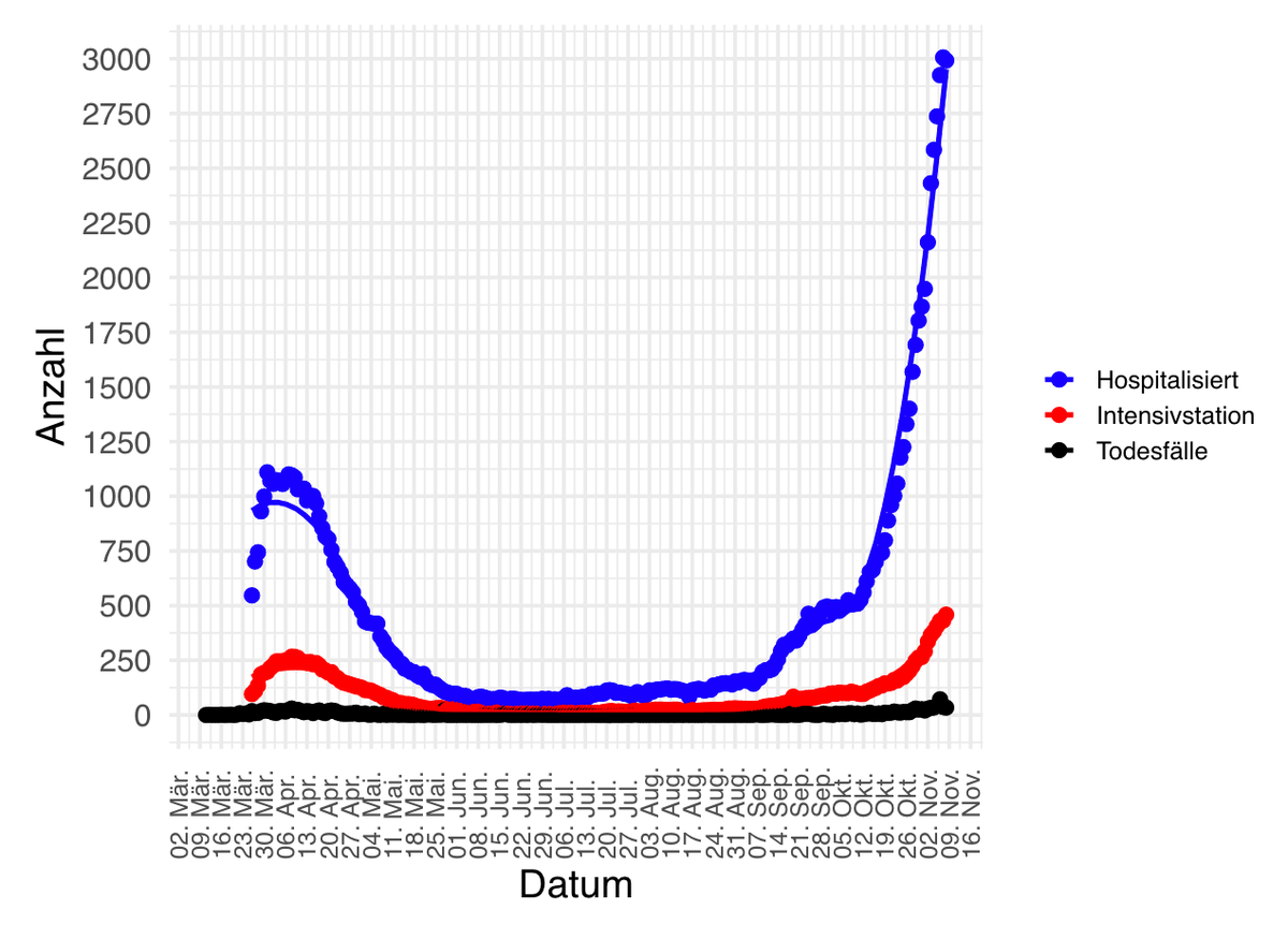 Heute(9:30) 3549 Hositalisierte, 321 mehr als gestern. 495 Fälle auf der Intensivstation, 22 mehr als gestern. Und 45 COVID-Todesfälle.