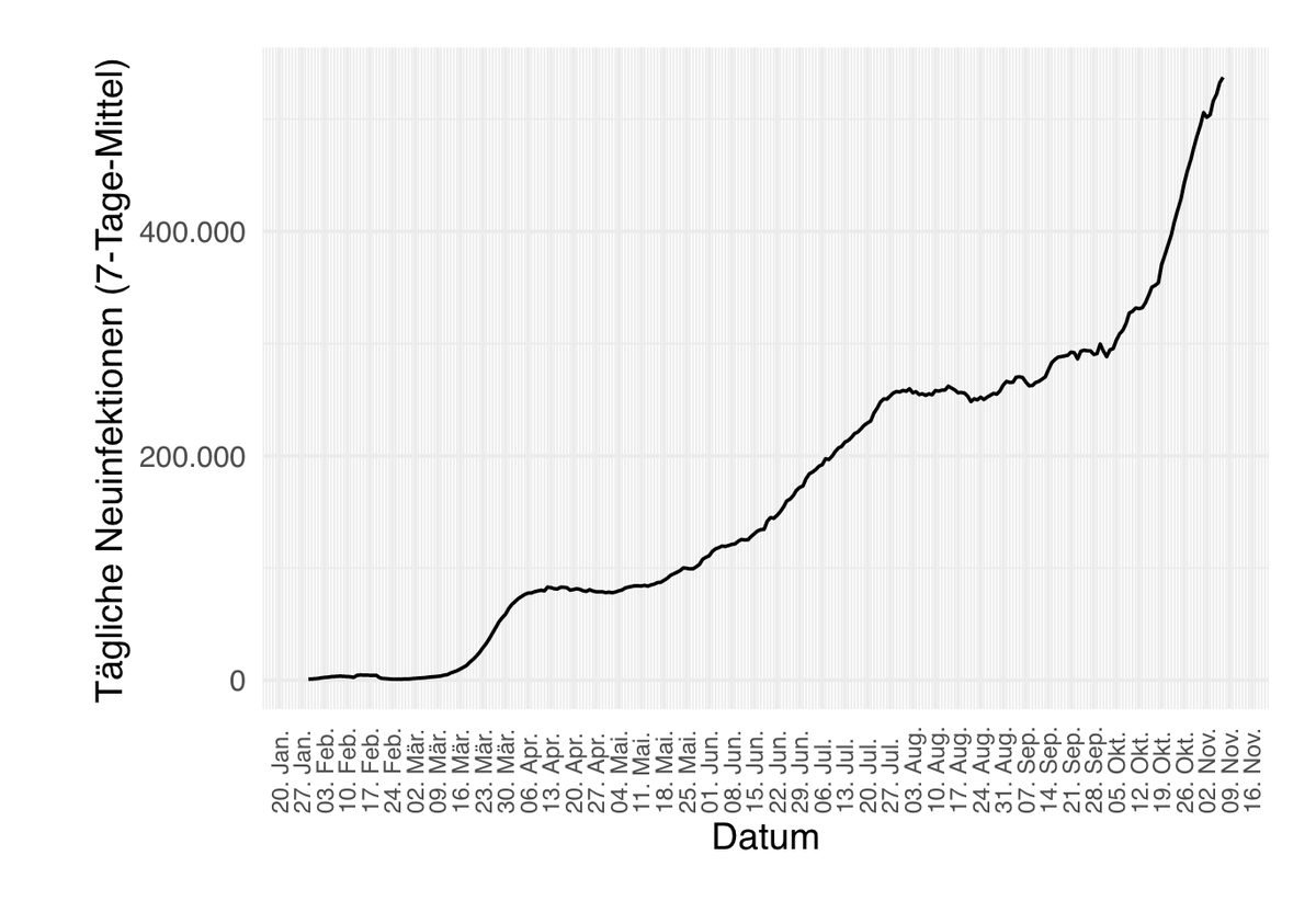Von gestern,7.11. 8:00, bis heute, 8.11. 8:00 6111 neue positive Fälle.
