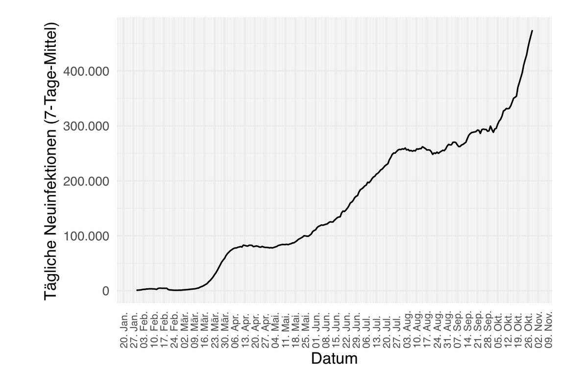 Die 7-Tage-Inzidenz pro 100.000 Einwohner beträgt 478.