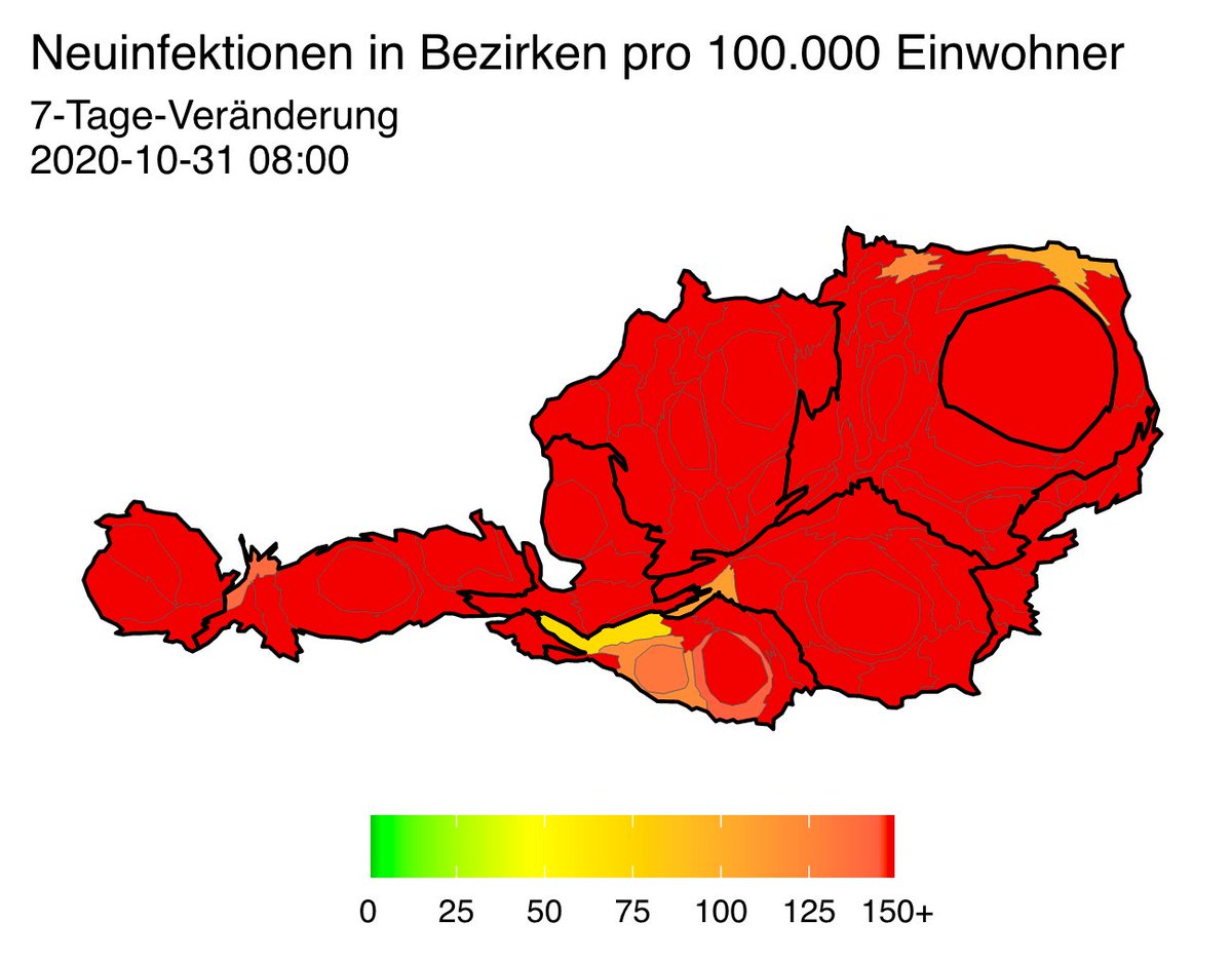 In Oberösterreich, Salzburg und Vorarlberg beträgt die Positivrate 35% oder mehr!