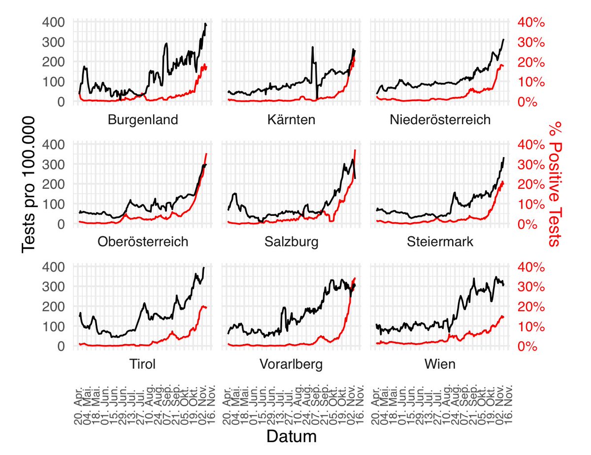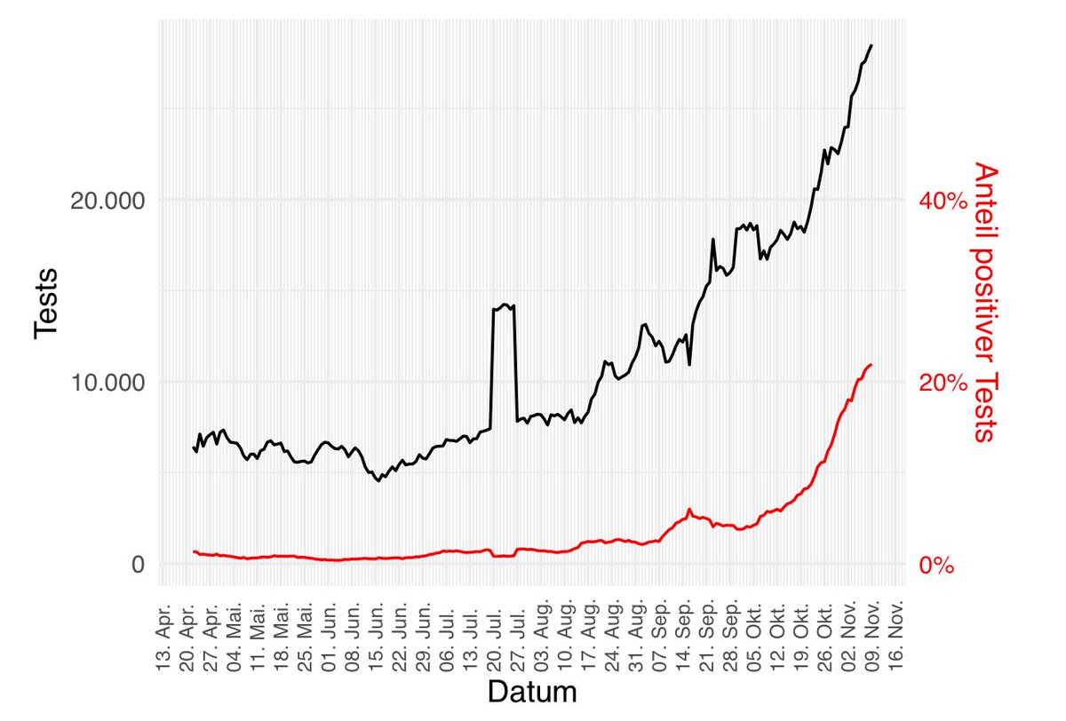 Und ich weiß, dass die Positivraten etwas verzerrt (also etwas zu groß) sind, weil manche private Institute nur positive Tests melden. Es wäre schön, wenn wir