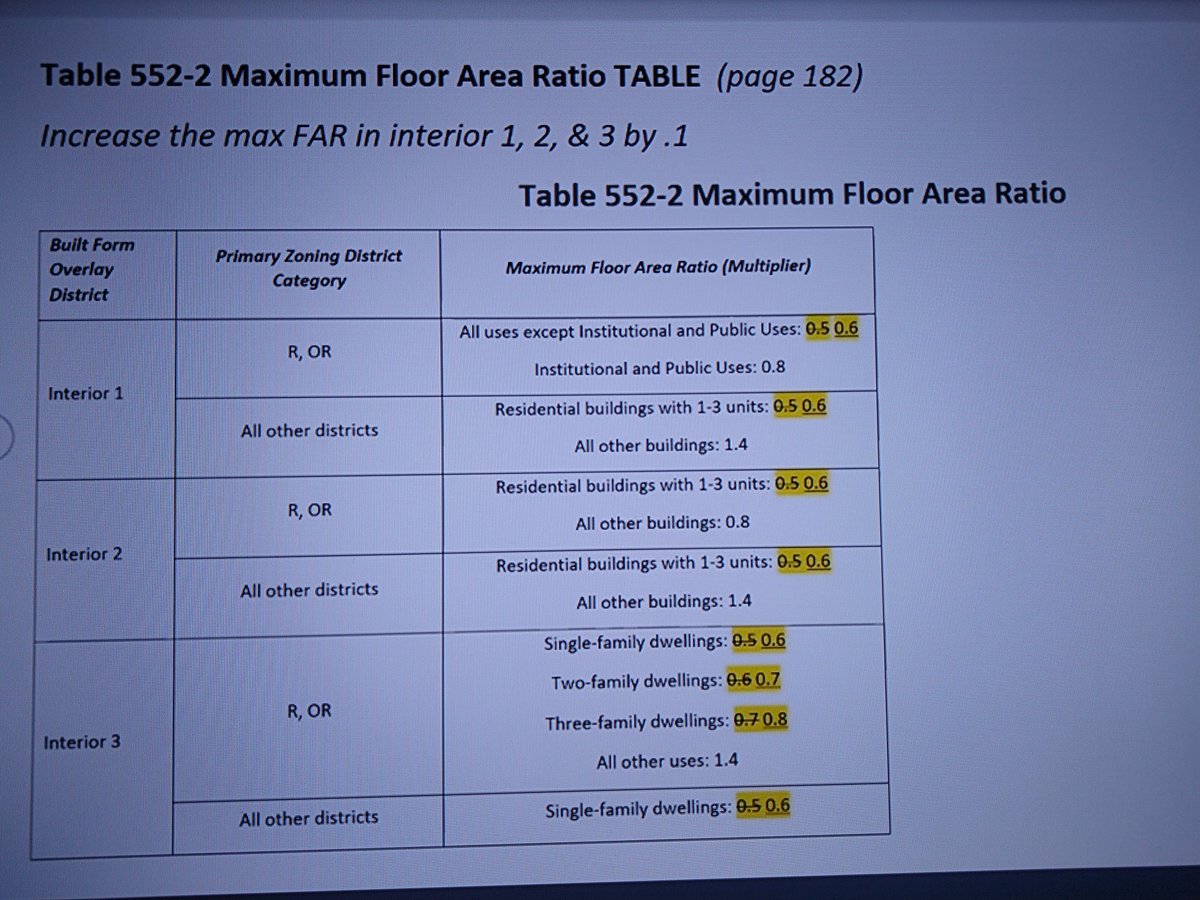 Two different proposals for increasing allowed FAR (ratio of floor area to lot area).