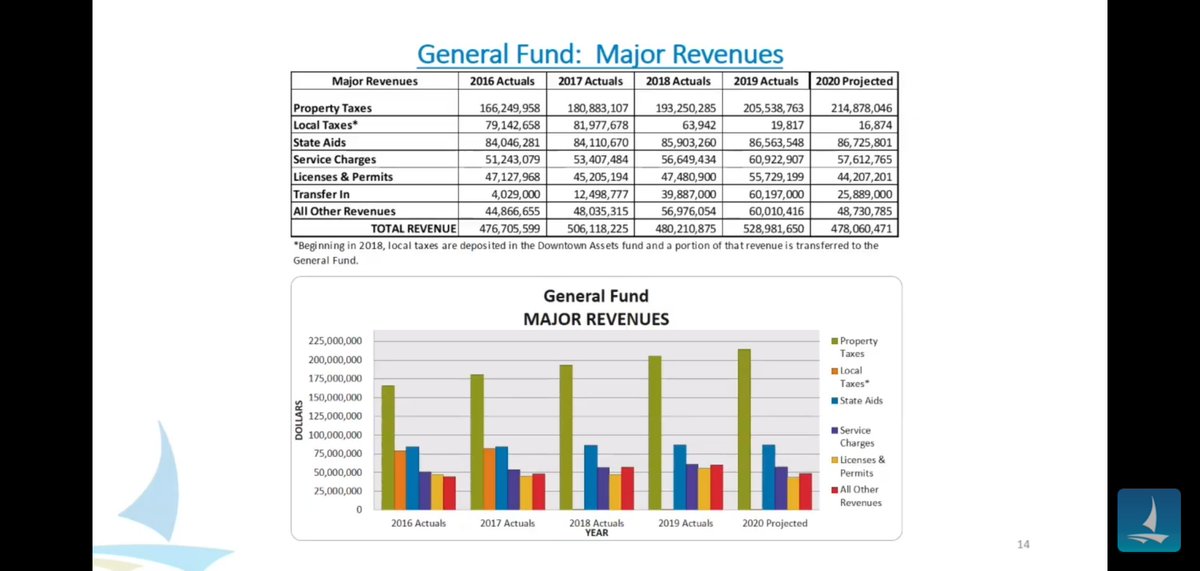 One way to look at this chart is that the police budget is 85% of the property tax portion of city revenues.