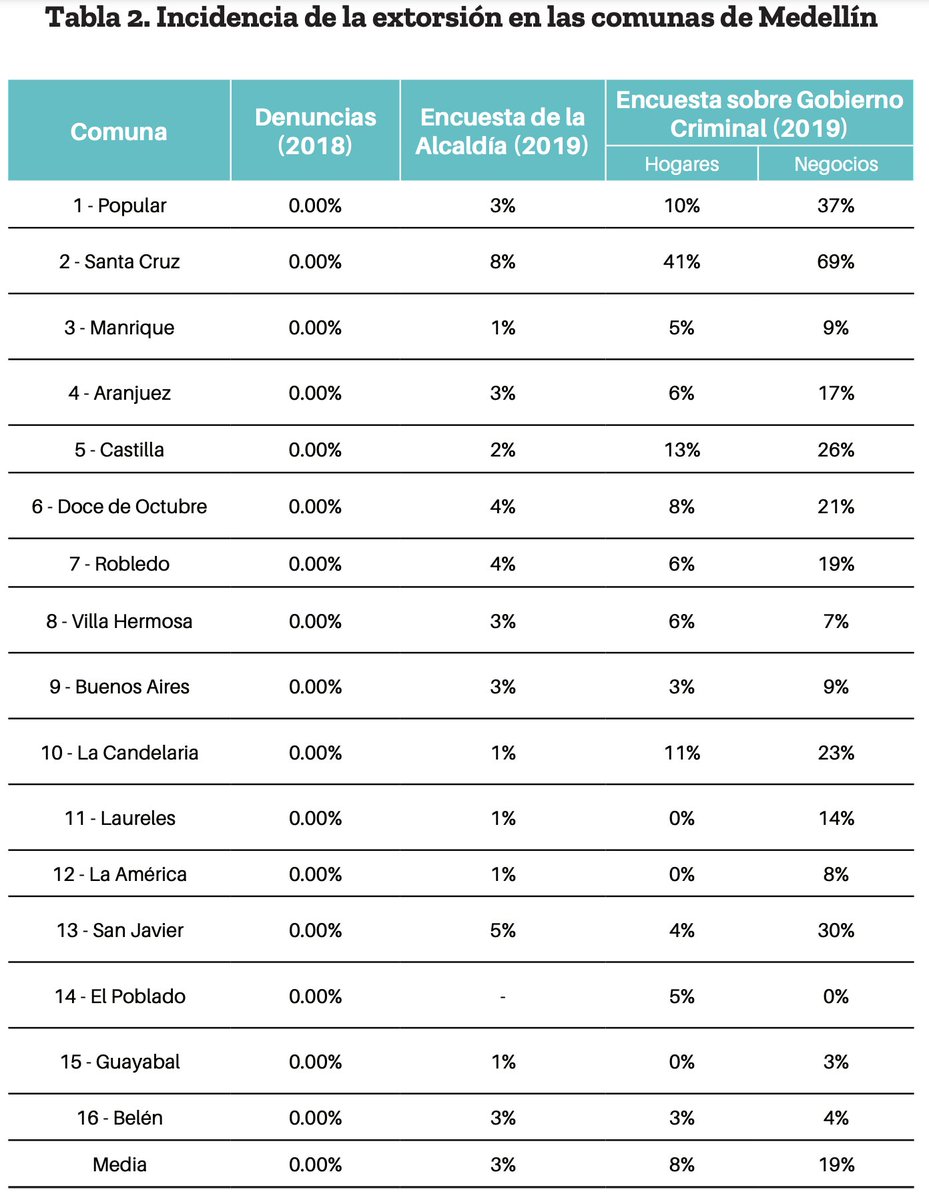 Con este ejercicio queremos poner sobre la mesa del @DANE_Colombia y otras agencias la necesidad de innovar en la recolección de datos, de incluir preguntas sobre gobierno criminal y extorsión, y de tener más contexto para hacer los levantamientos /22