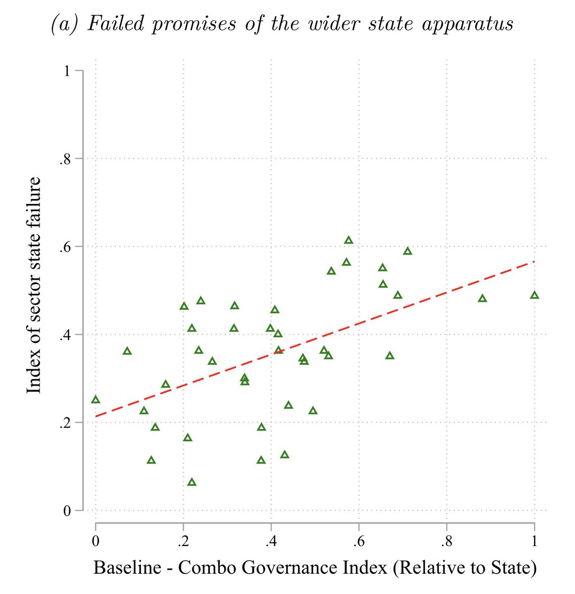 Pero varios mecanismos podrían explicar un aumento en gobierno criminal cuando el Estado hace más presencia. Por ejemplo, si el Estado es ineficiente puede aumentar la demanda por los servicios que prestan grupos criminales /6