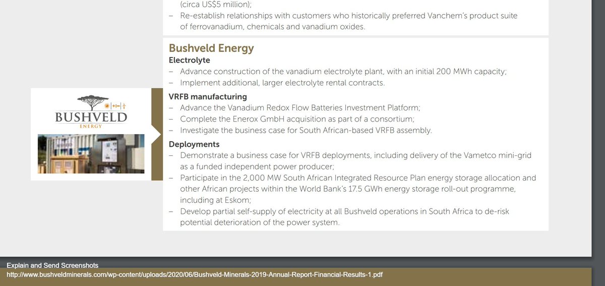 In addition, there are the other Bushveld Energy priorities for 2020, be it they will now likely mainly fall in 2021.