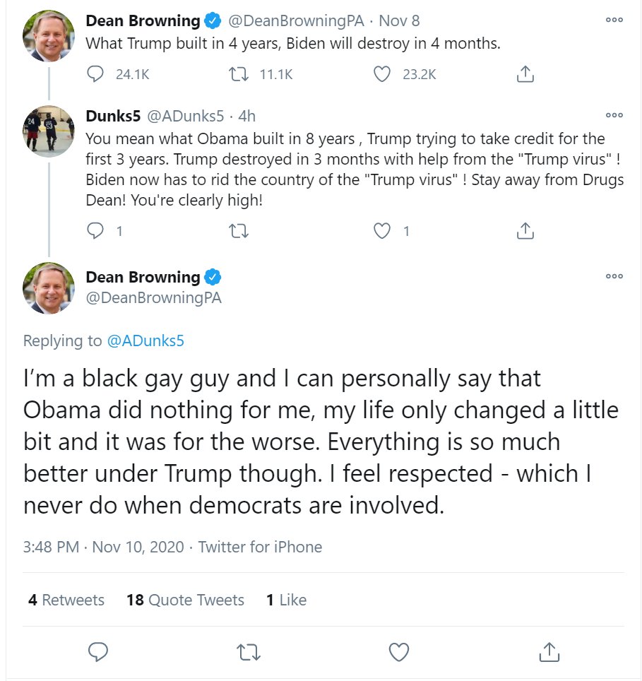 Deleted, but here's the screenshot of @DeanBrowningPA in gay blackface.