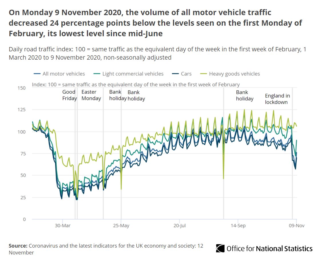 On 9 November 2020, motor vehicle traffic was 24 percentage points below the level seen on 3 February and its lowest level since mid-June ow.ly/QZpD50CiqLT