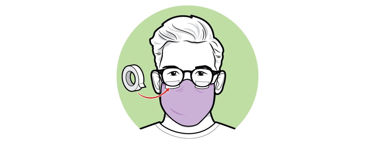 O un poco de cinta adhesiva en la parte superior de la mascarilla puede sujetarla de forma más segura a su cara en las mejillas.