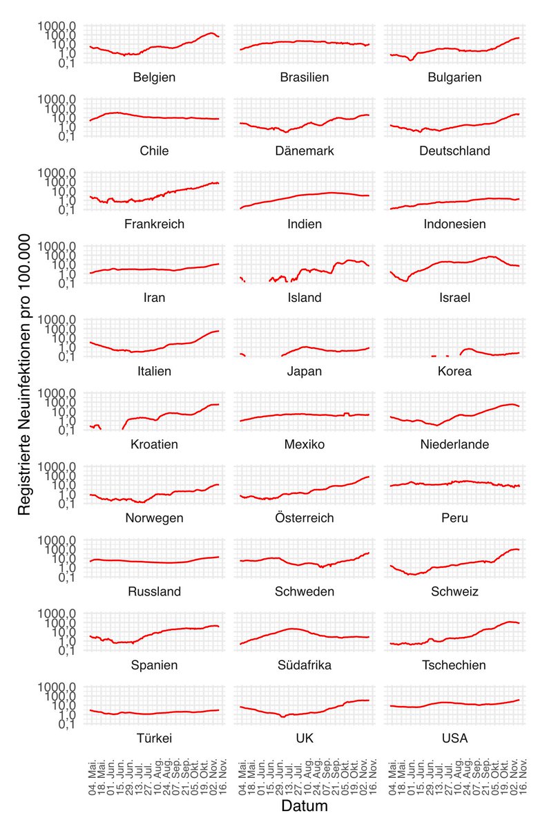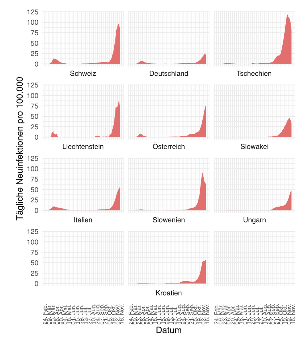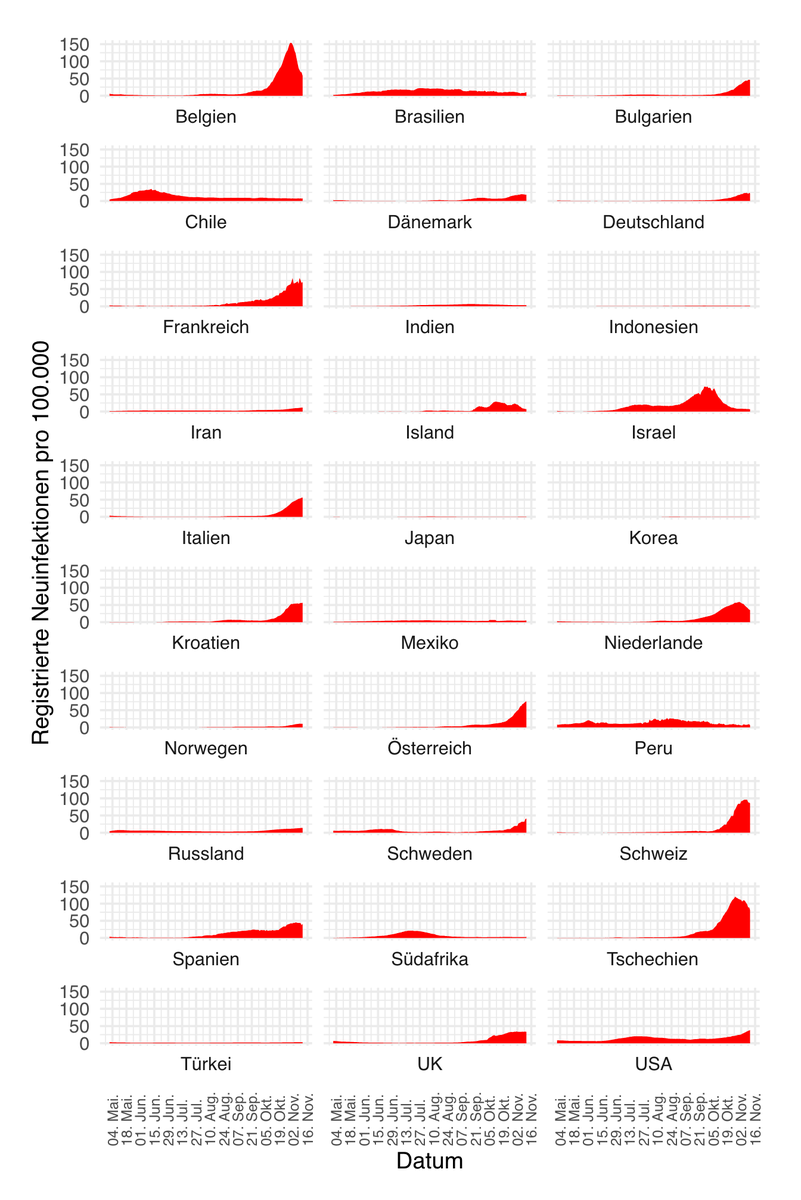 System z.B. in den letzten Tagen ungefähr 1000 Fälle, heute ungefähr 2000. Aus Wien höre ich (via @mariodujakovic), dass es heute ca. 1400 neue Fälle gegeben hat. Ich publiziere trotz allem heute meine täglichen Grafiken, weil ich gar keine Grafiken statt ungenauer Grafiken