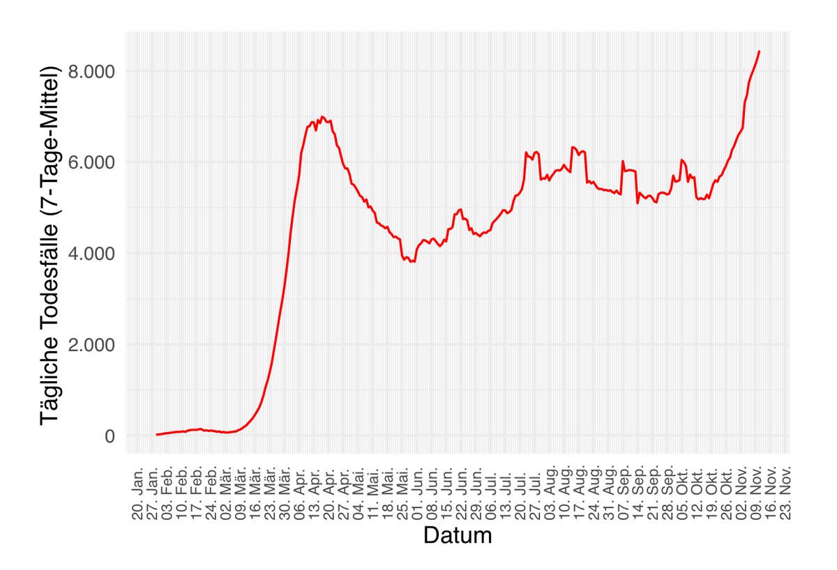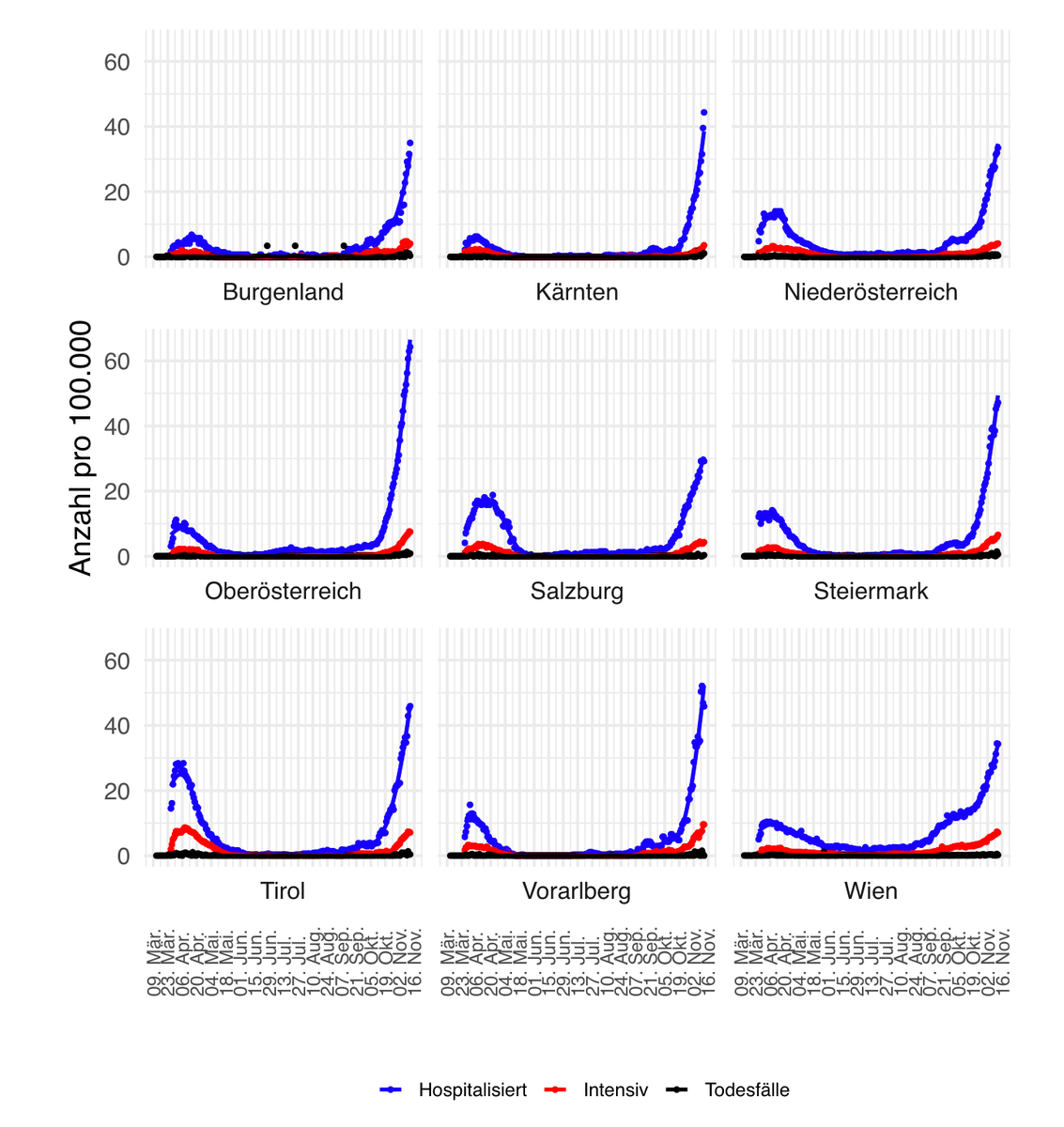 Heute(9:30) 3549 Hositalisierte, 321 mehr als gestern. 495 Fälle auf der Intensivstation, 22 mehr als gestern. Und 45 COVID-Todesfälle.