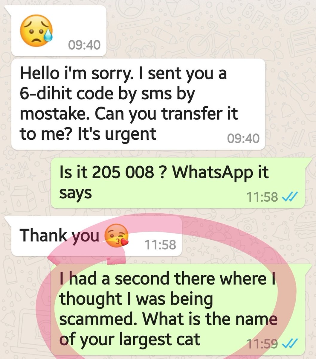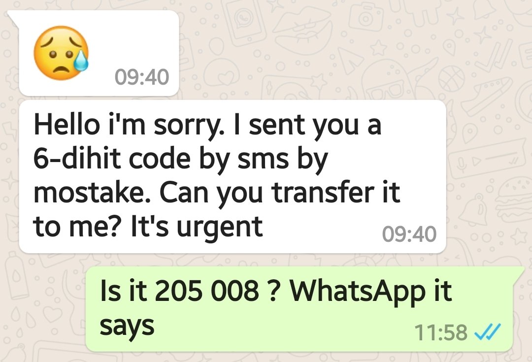 Having no need for a WhatsApp code, I ignored it. But then my neighbour WhatsApped me. Let's call her Penny. An emoji came first: