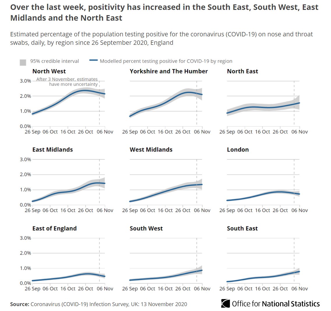 In the last week, infections increased in the South East, South West, East Midlands and the North East, but other regions appear to have levelled off ow.ly/EeOe50CjCPv