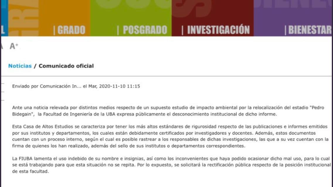 Posteriormente, para nuestro asombro y desconcierto, la FIUBA desconoce la legitimidad del informe.