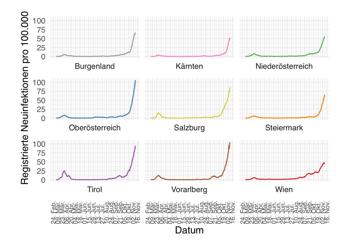 in Kärnten von gestern 391 auf heute 1007 gestiegen und in Niederösterreich von 1446 gestern auf 796 heute gesunken. Bei dermaßen großen Änderungen liegt (wieder einmal) der Verdacht nahe, dass es da Meldeprobleme gegeben hat. Also: Blog lesen (covidanalysen.at) aber