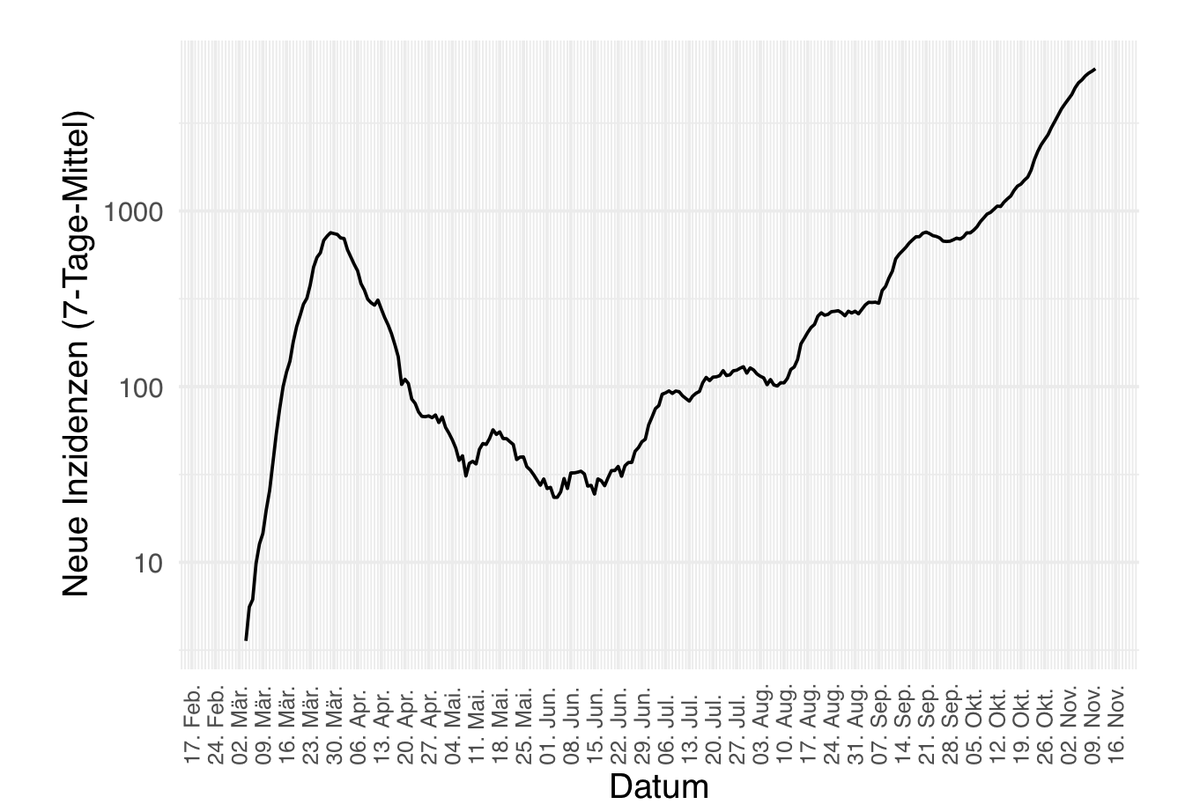System z.B. in den letzten Tagen ungefähr 1000 Fälle, heute ungefähr 2000. Aus Wien höre ich (via @mariodujakovic), dass es heute ca. 1400 neue Fälle gegeben hat. Ich publiziere trotz allem heute meine täglichen Grafiken, weil ich gar keine Grafiken statt ungenauer Grafiken