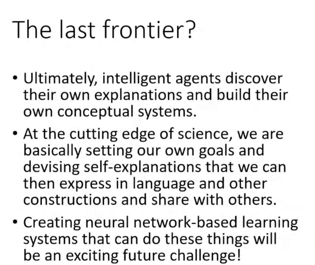 Another distinction that is important that there is a disagreement on how to do research. The Deep Learning community has argued that we should not constrain ourselves with a-priori hypothesis that may be wrong. Let the learning system discover the algorithms.