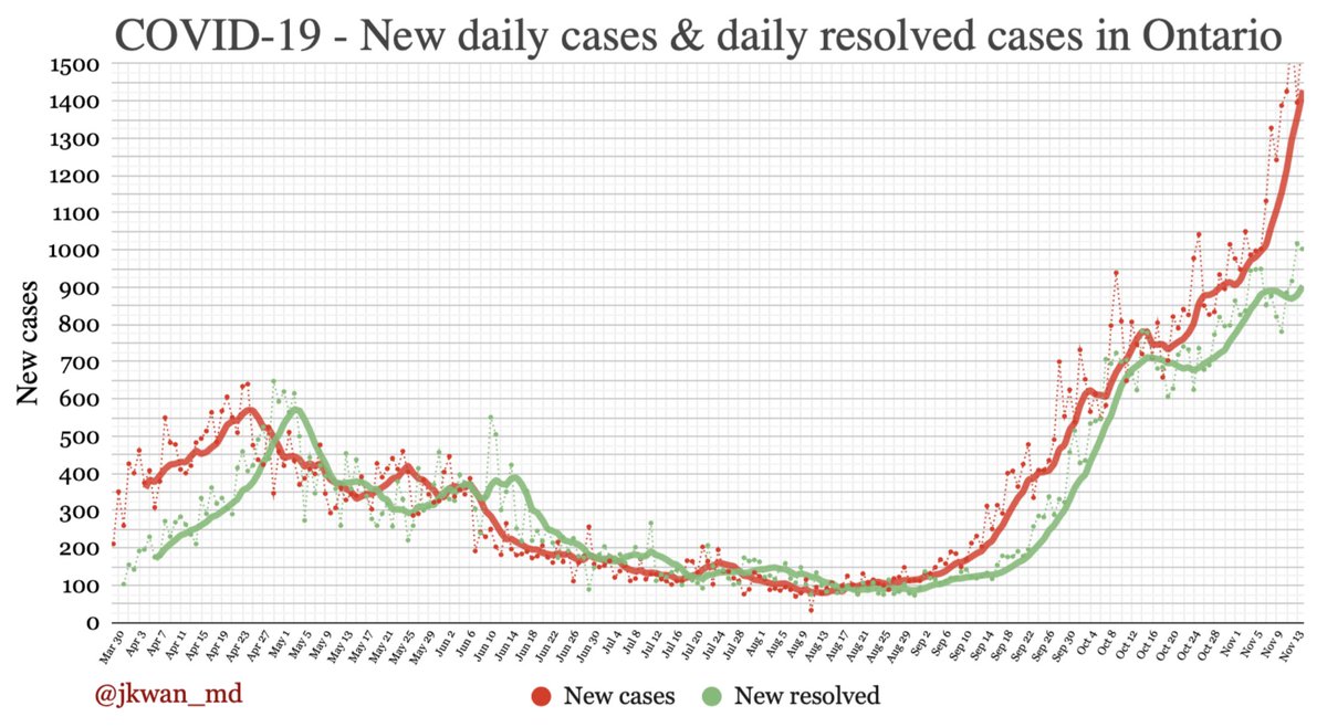 †Resolved = 14 days post-symptom onset if not hospitalized/deceased, does not account for any potential persistent symptoms or complications. #LongCovid #COVID19#COVID19ON#covid19Canada