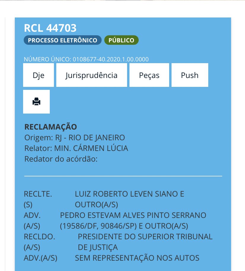 ATENÇÃO: Leven Siano entrou com uma processo de reclamação no Superior Tribunal Federal, mesmo ainda não tendo uma resposta do Mandado de Segurança do Superior Tribunal de Justiça. A petição já foi protocolada. #CanaldoPedrosa#OsDonosDaBolaRio