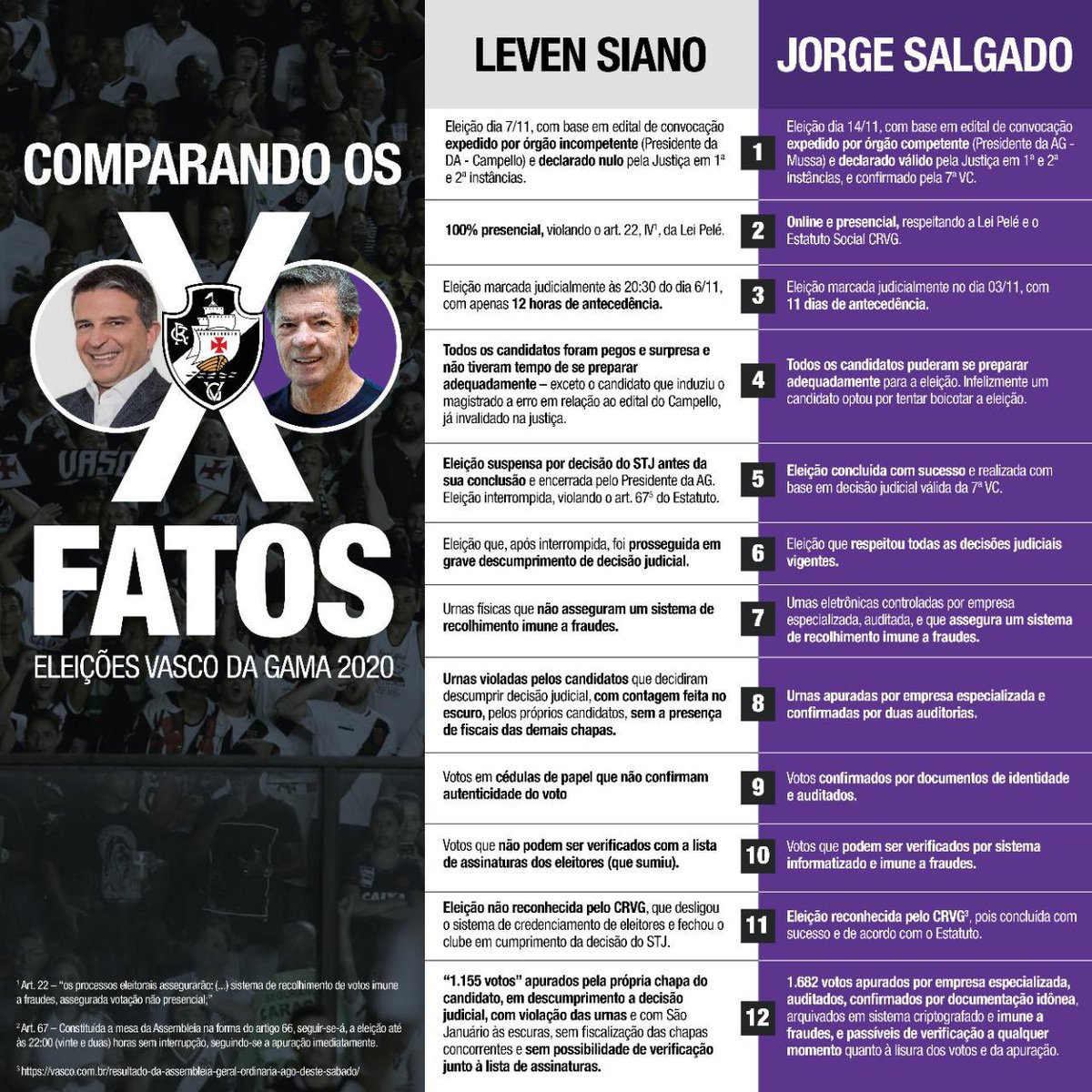 2) Jorge Salgado, vencedor do pleito do dia 14 de novembro, também divulgou uma nota nesta manhã. Através da assessoria da chapa Mais Vasco, os seguintes materiais foram enviados à imprensa. Veja:
