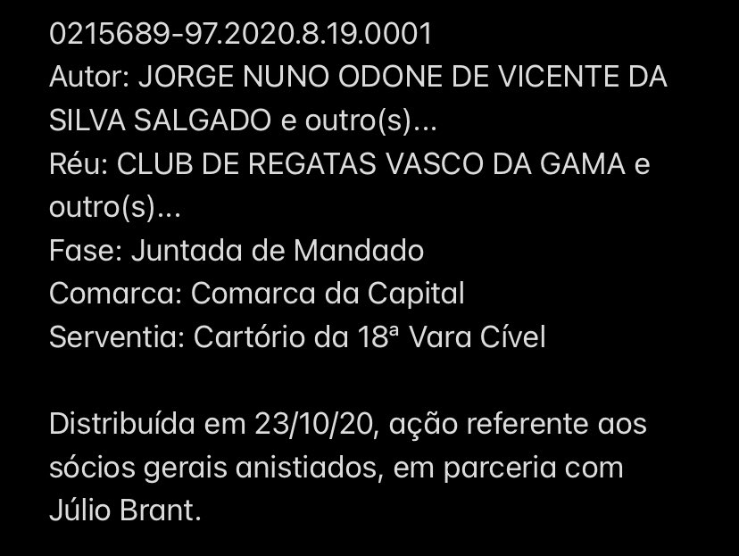 Um detalhe que tenho sido questionado é sobre Jorge Salgado, da Mais Vasco, ter dito que ele não tem nenhuma ação na “confusão eleitoral”, no pedido feito a Leven Siano para retirar as ações na justiça. Na verdade, ele tem a seguinte ação: