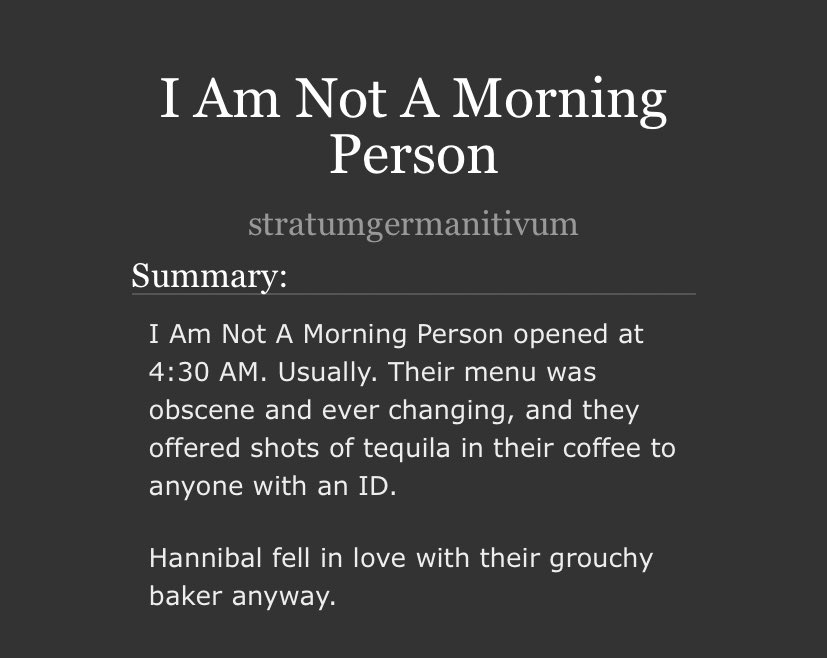The one where Hannibal puts out the fire in will’s brain early, Will’s dog’s feature prominently, Will is Creole, legally a minor, & doesn’t drink. Hannibal’s still a serial killer cannibal but he’s a good boyfriend.