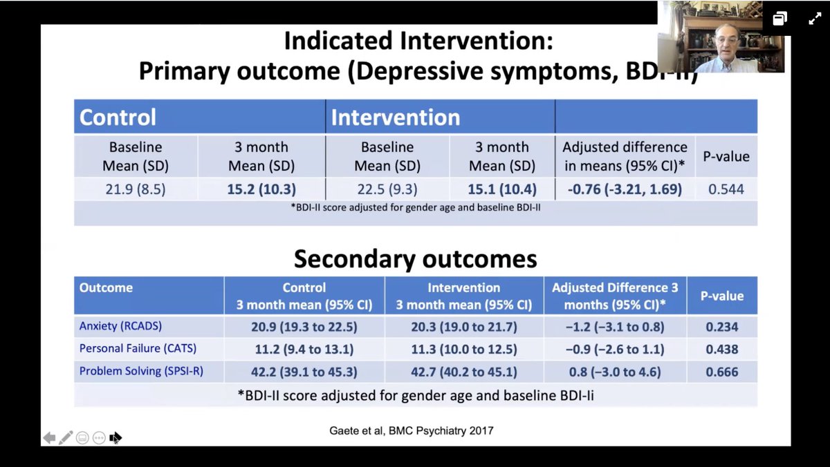 So they tried an indicated intervention instead for kids with high depressive symptoms, but again this did not work (Gaete BMC Psychiatry 2017) #IEPA12