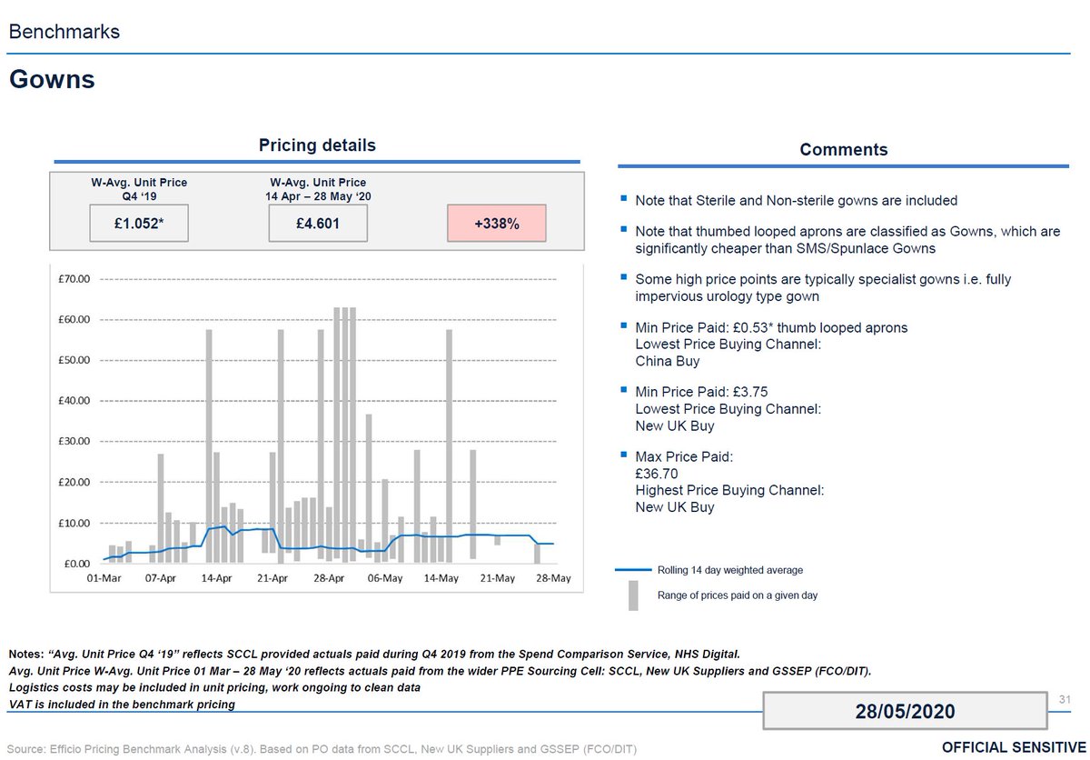 That suggests we paid Mr Saiger a unit price for gowns of £6.91 - rather more than the £4.60 average Govt's leaked benchmarking doc shows we paid everyone else.