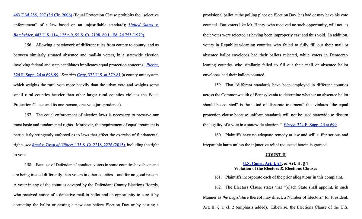 Here's the Trump campaign's equal protect argument in their amended complaint, for reference