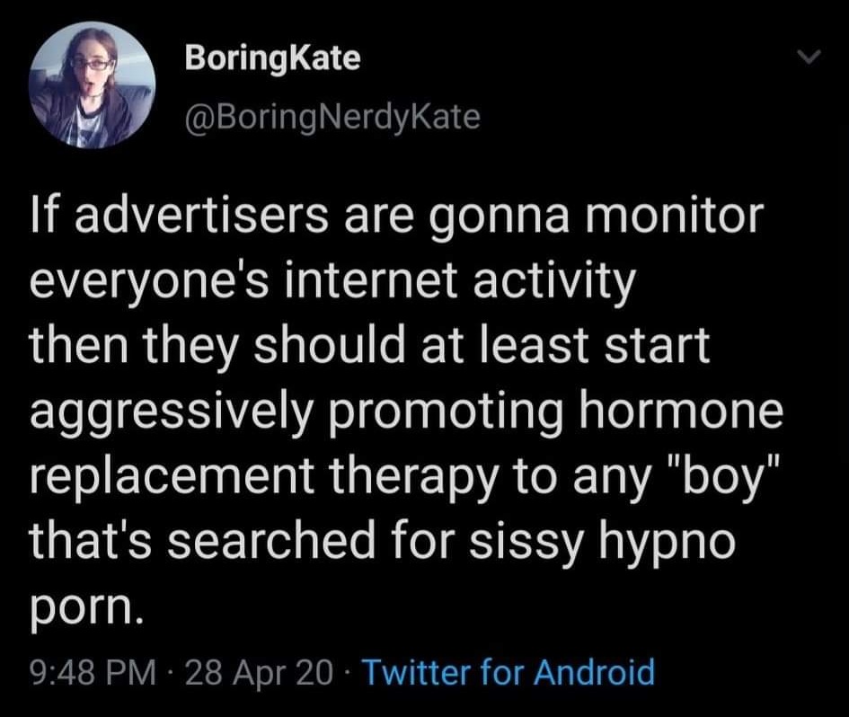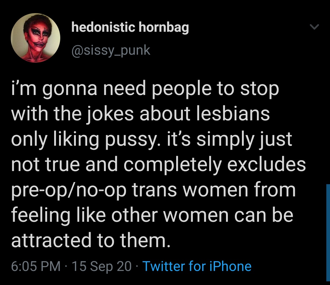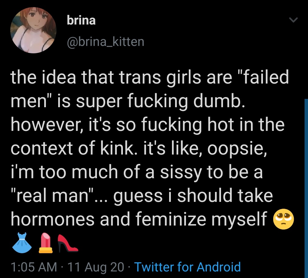 "If you continue to live as a beta male, you will be destined to a life of celibacy and sadness. When you become a girl, you'll have lots of sex—all girls do.