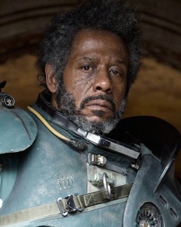 Saw tenían otro aspecto en los primeros trailers de "Rogue One", dicho aspecto se usó para el prólogo de la película y en el resto de la misma se le añadió el pelo y la barba.
