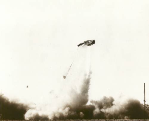 Otro helicóptero fue enviado para recoger la cápsula de escape. Aquí la tripulación se hace una foto al día siguiente.
