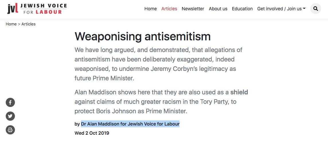 4/ Thought Jenny Manson was grilled really well on Newsnight, but JVL have got an awful lot of airtime talking about antisemitism without being challenged for the major part they have themselves played. They have led from the front denying the problem whilst bathing in it.