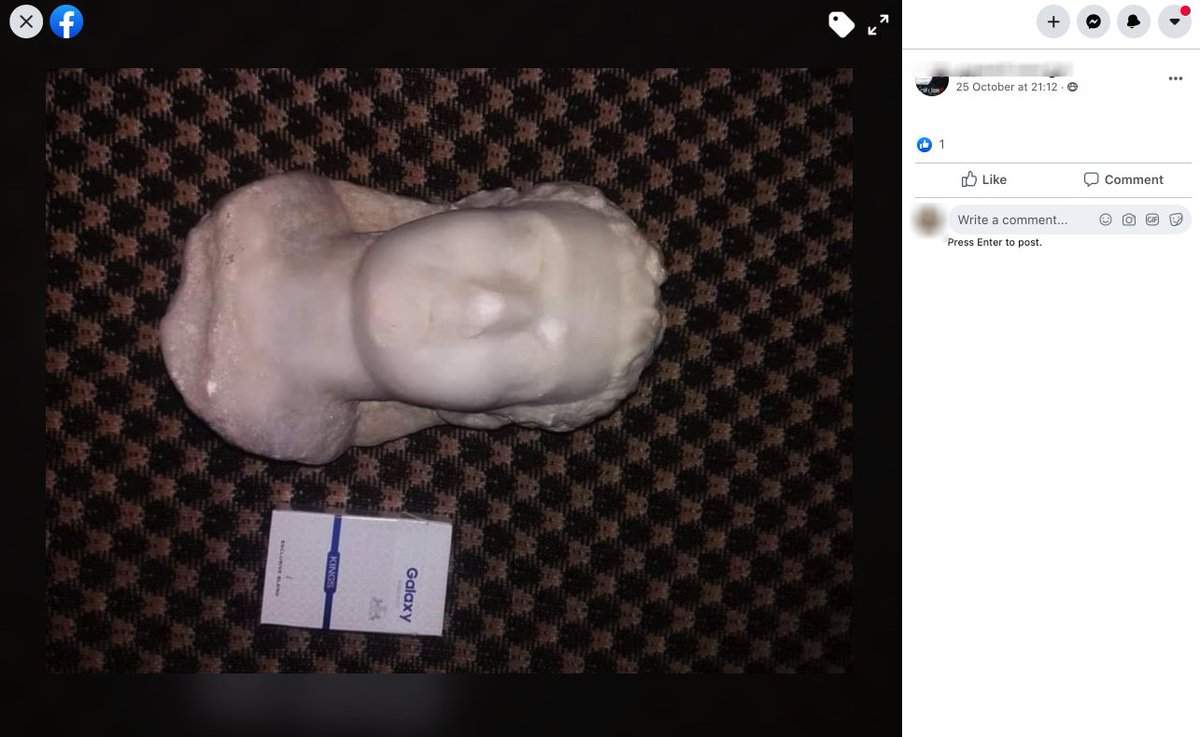 Note: While his post included no text, the Facebook group's Arabic name explicitly includes the phrase "antiquities for sale", Items in posts are assumed to be for sale